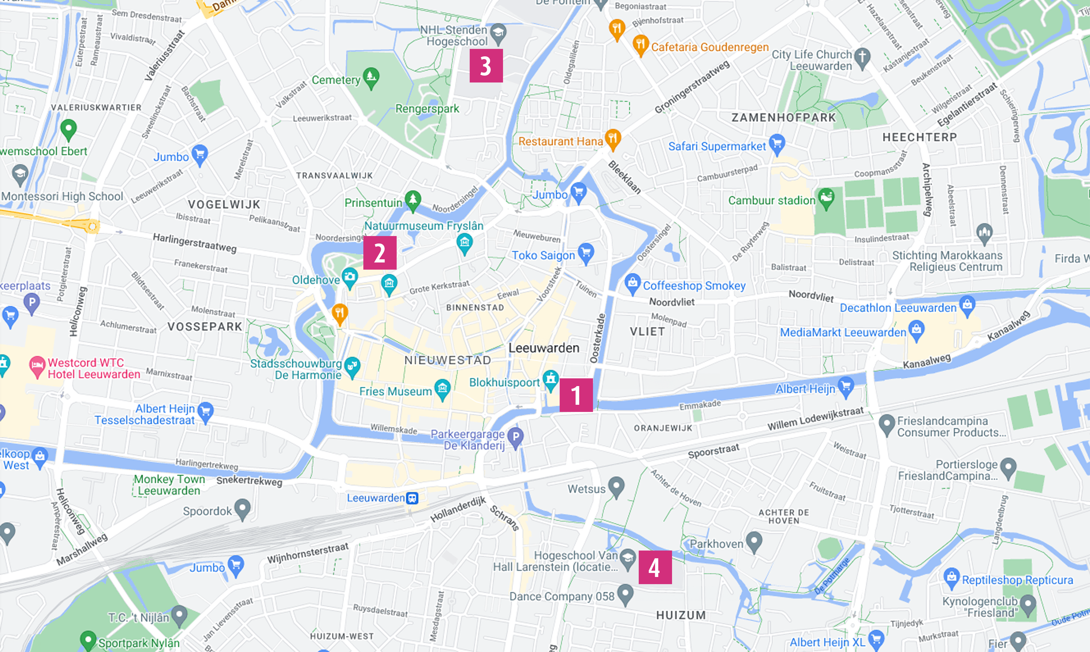 dbiebBlokhuisplein 408911 LJ Leeuwardenmeer infoTresoarBoterhoek 18911 DH Leeuwardenmeer infoNHL Stenden hogeschoolRengerslaan 108917 DD Leeuwardenmeer infoHogeschool Van Hall LarensteinAgora 18934 CJ Leeuwardenmeer info